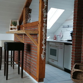 Die Ferienwohnung „An der Schmiede“ ist 65 m2 groß und verfügt neben einem großzügigen Wohn- und Essbereich mit offener Küche über ein Duschbad und ein separates Schlafzimmer. Im Wohn- und Essbereich sorgt ein gemütlicher Kaminofen für wohlig warme Kaminatmosphäre.